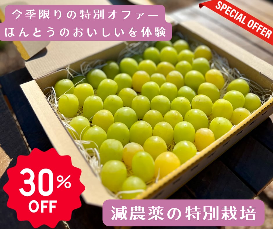 山梨県産・特別栽培シャインマスカット【数量限定】800g ≪今季ラストのお試し価格30%OFF≫